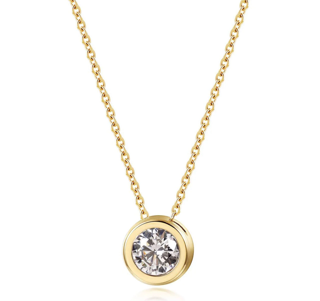 Bring effortless elegance to your everyday look with a pop of color from the cia bezel pendant necklace. A gold chain paired with a colored bezel set cubic zirconia. Available in a spectrum of rich, eye catching colors adds personality to any outfit.