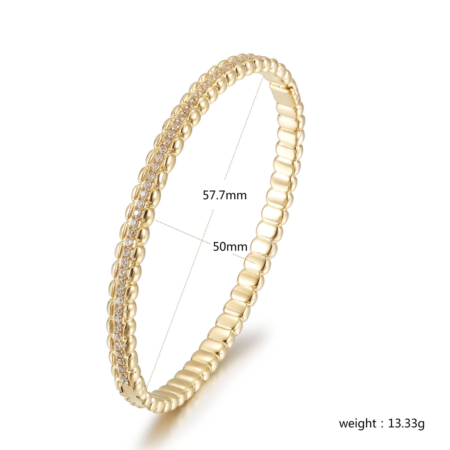 A beaded scalloped design accented by a central row of pavé-set cubic zirconia .