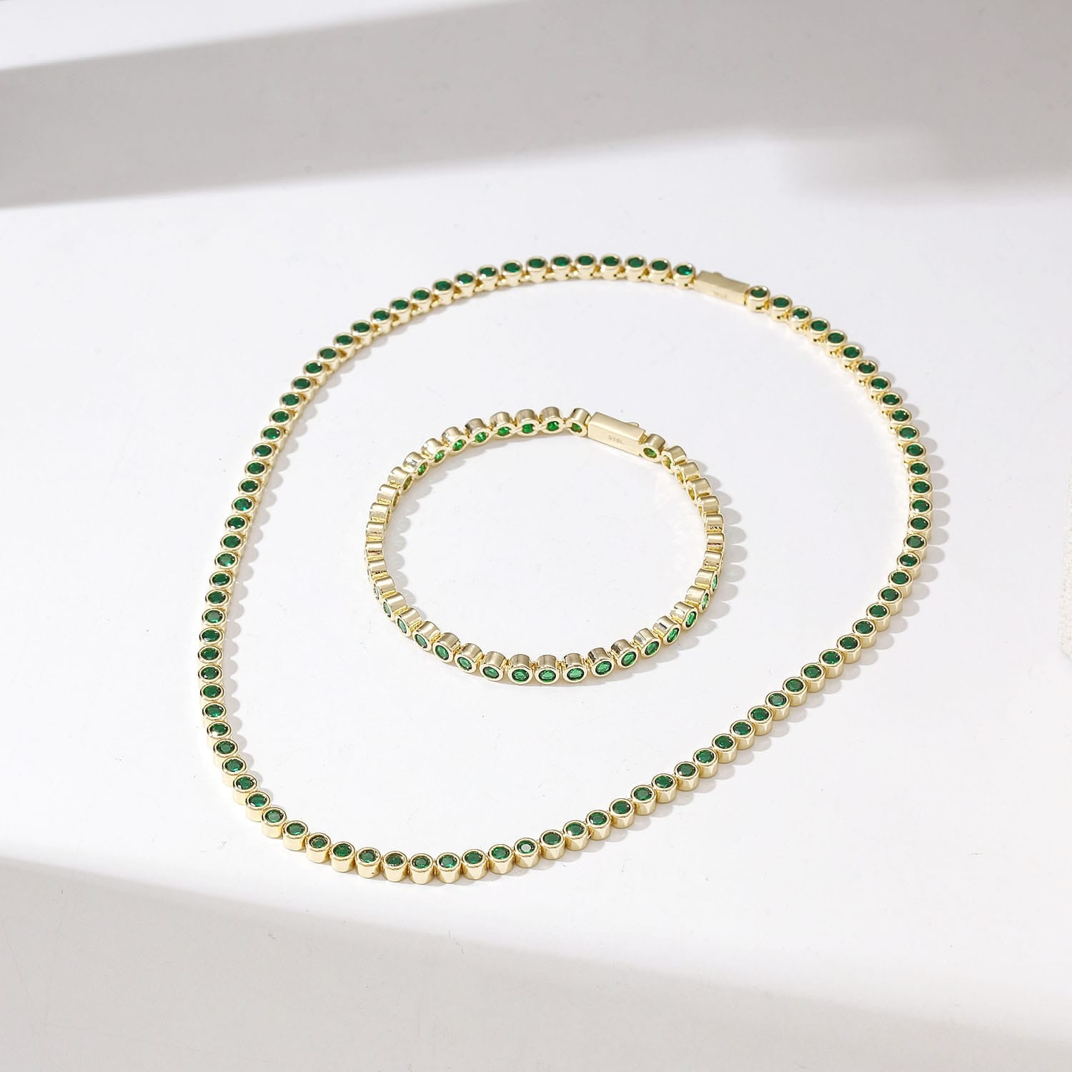 The eloise color tennis set brings together the elegance of our bezel tennis necklace and the bold charm of our matching tennis bracelet.