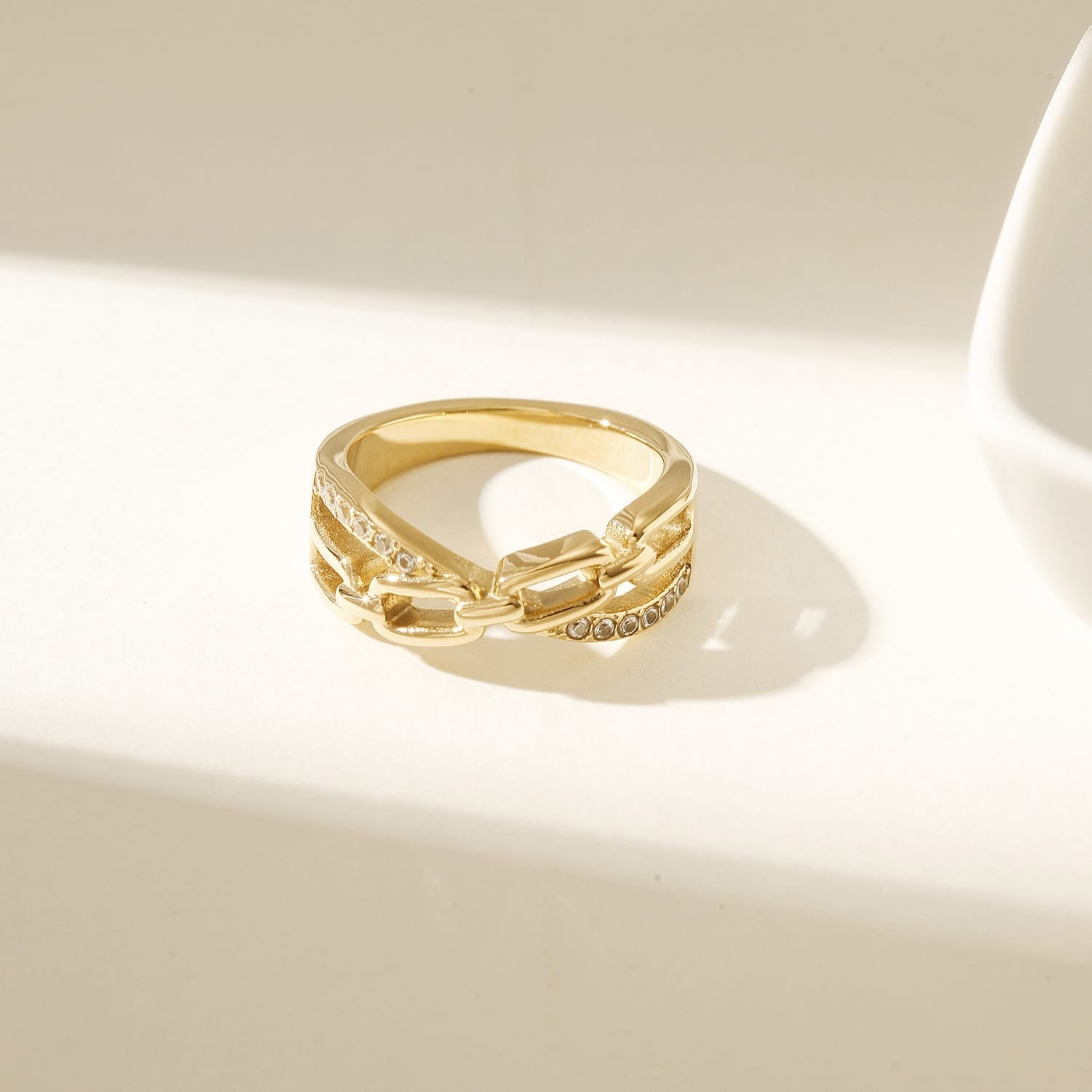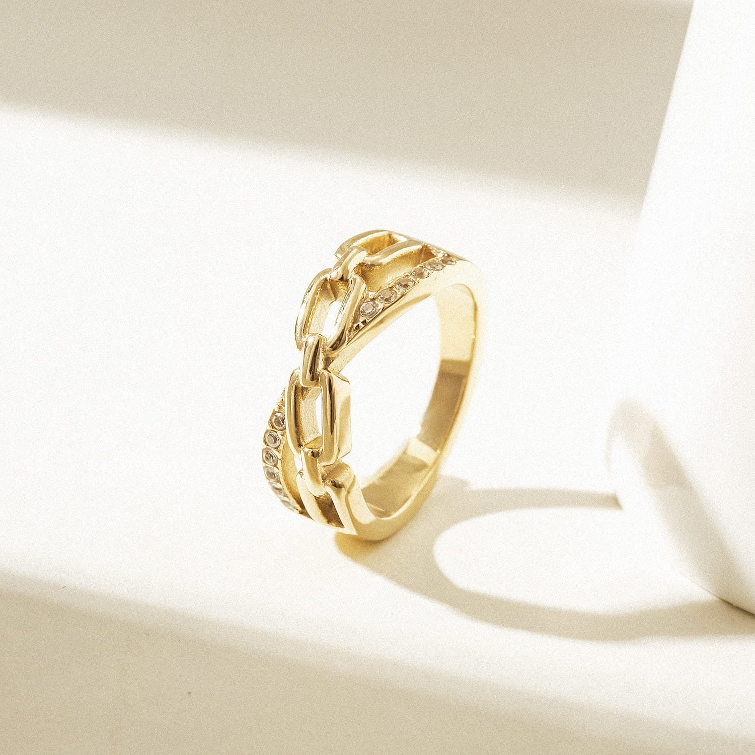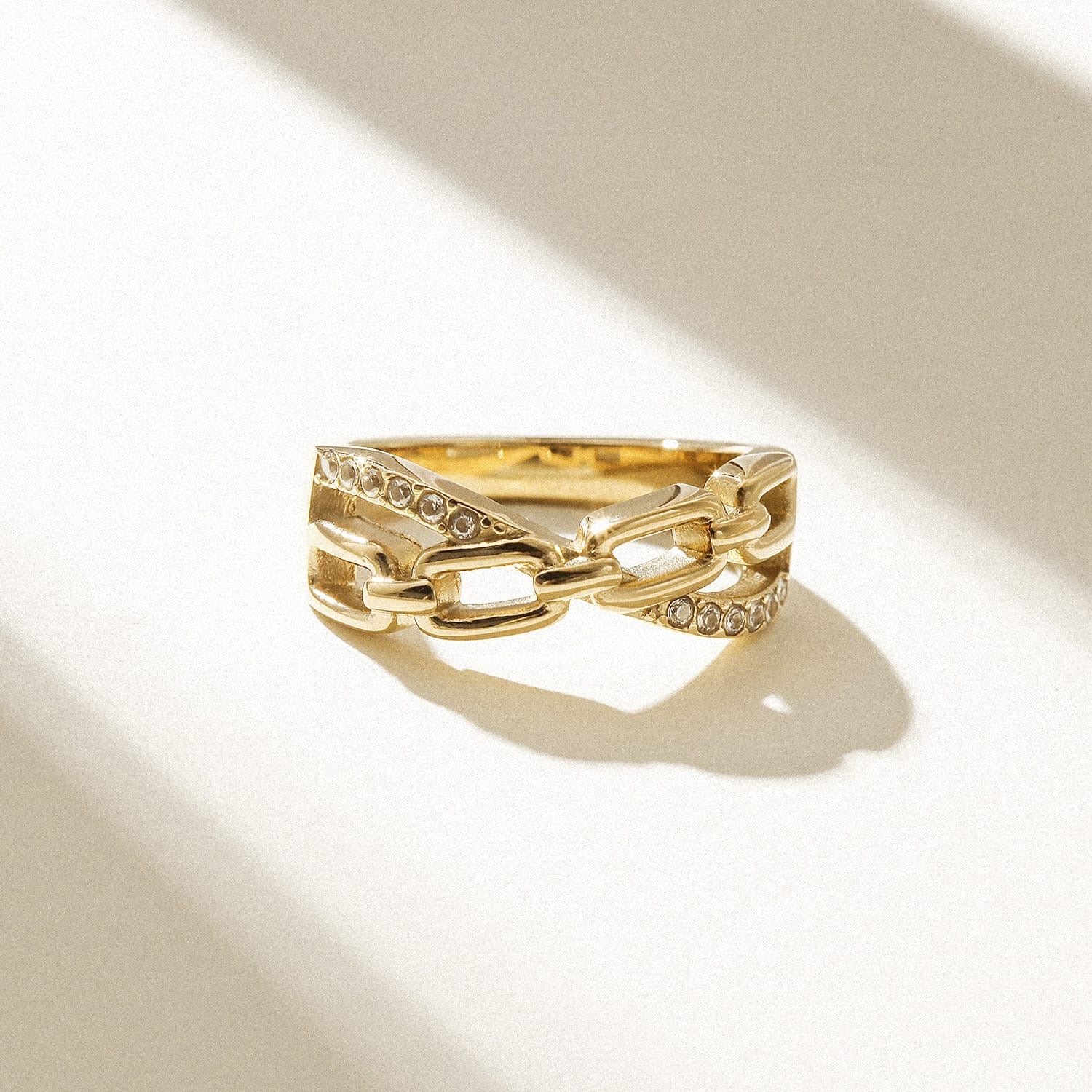 Featuring an intertwining chain links paired with cubic zirconias—elevated yet grounded.