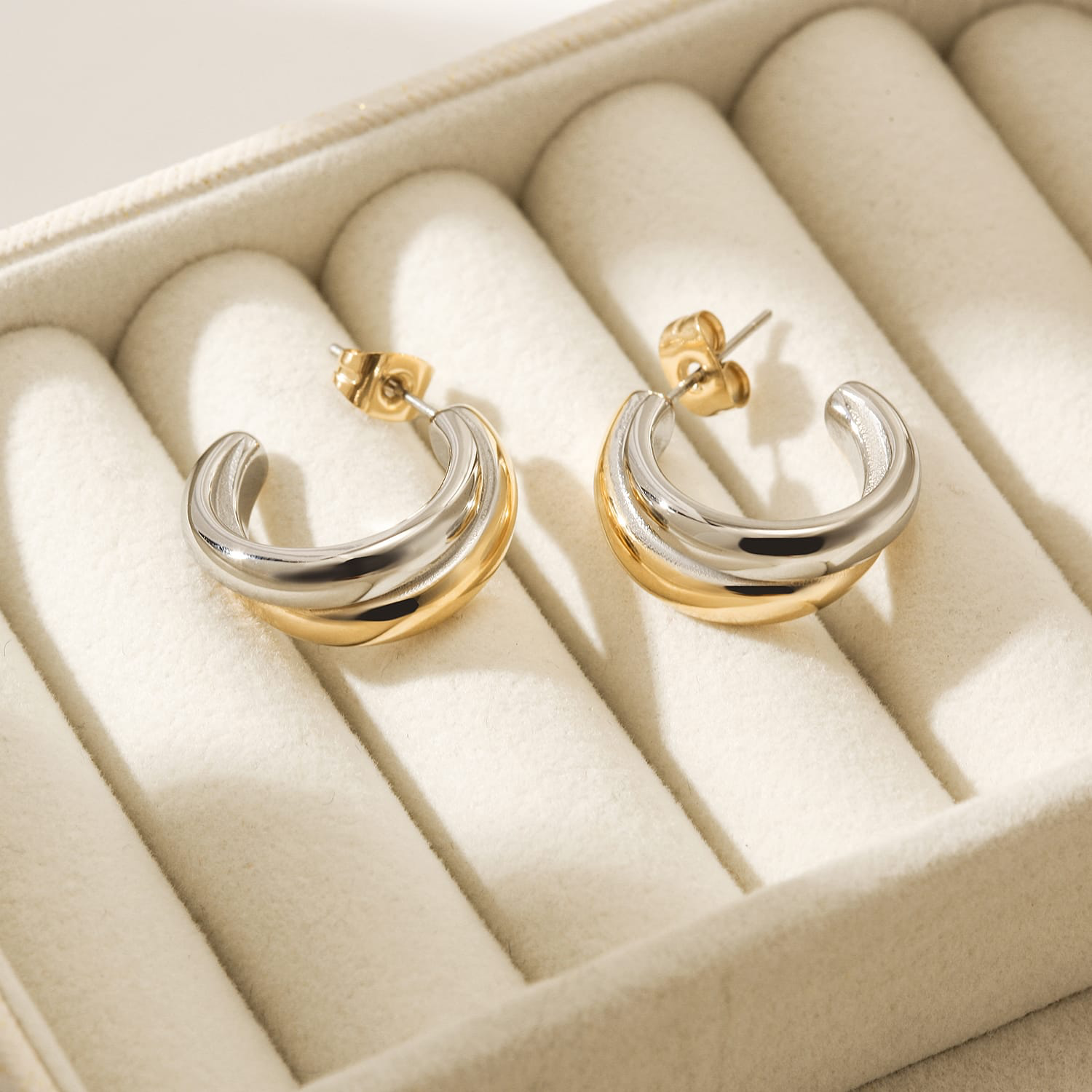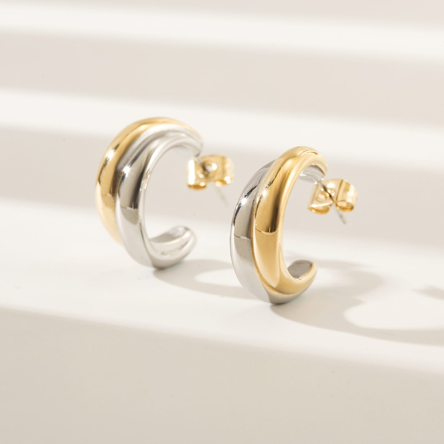 Featuring interwoven gold and silver curves, their fluid form creates a timeless silhouette with a modern twist. Whether worn alone or paired with your favorite studs, bring effortless polish to any look.